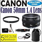 Canon EF 50mm f1.4 USM Standard & Medium Telephoto Lens (IMPORT) for Canon SLR Cameras - Includes Deluxe Accessory Kit & 5 Year Celltime Lens Warranty