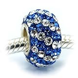 Pro Jewelry One Swarovski Crystal blue/white with .925 Sterling Silver Bead Pandora Troll Chamilia Biagi Bead Compatible